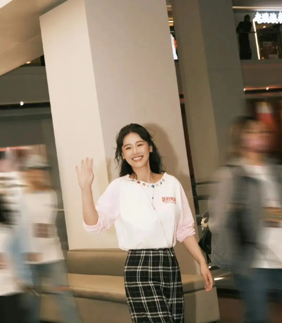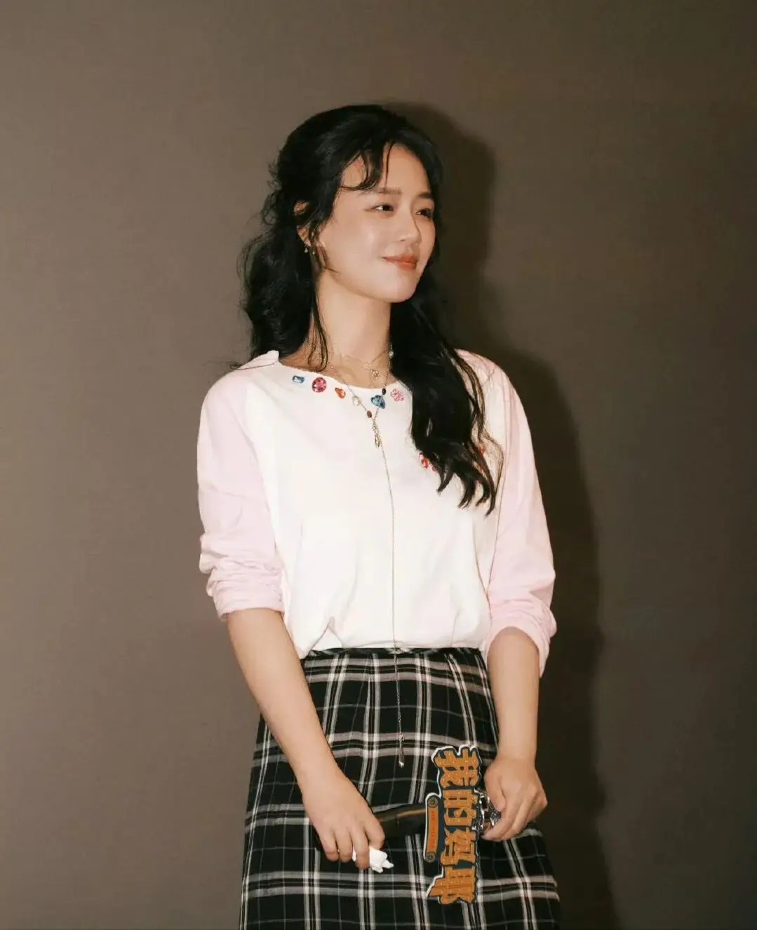 内搭选择极简的白色基础衬衫,完美中和格纹的繁复感,干净底色让整套穿搭重点更突出,避免视觉杂乱。