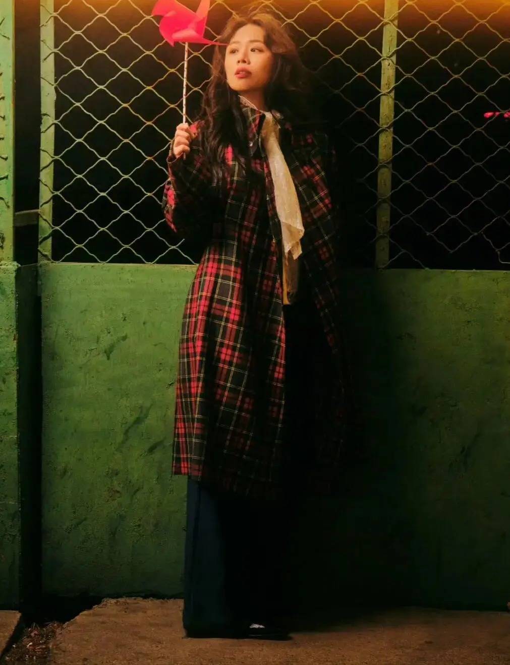 这组拿着风车的写真,瞬间把人带入90年代的香港电影,氛围感十足。