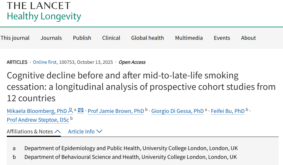 [2] 《《柳叶刀》子刊:戒烟对认知有重要意义!最长18年随访研究显示,戒烟者的长期认知轨迹较吸烟者更好》.奇点网.2025-10-14